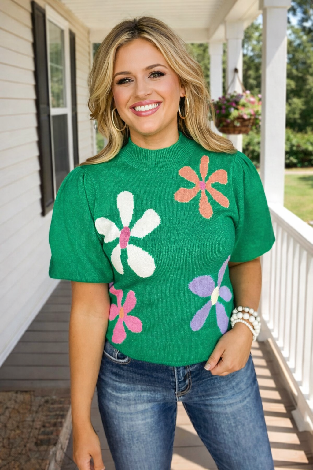 Short Sleeve Daisy Sweater - Green